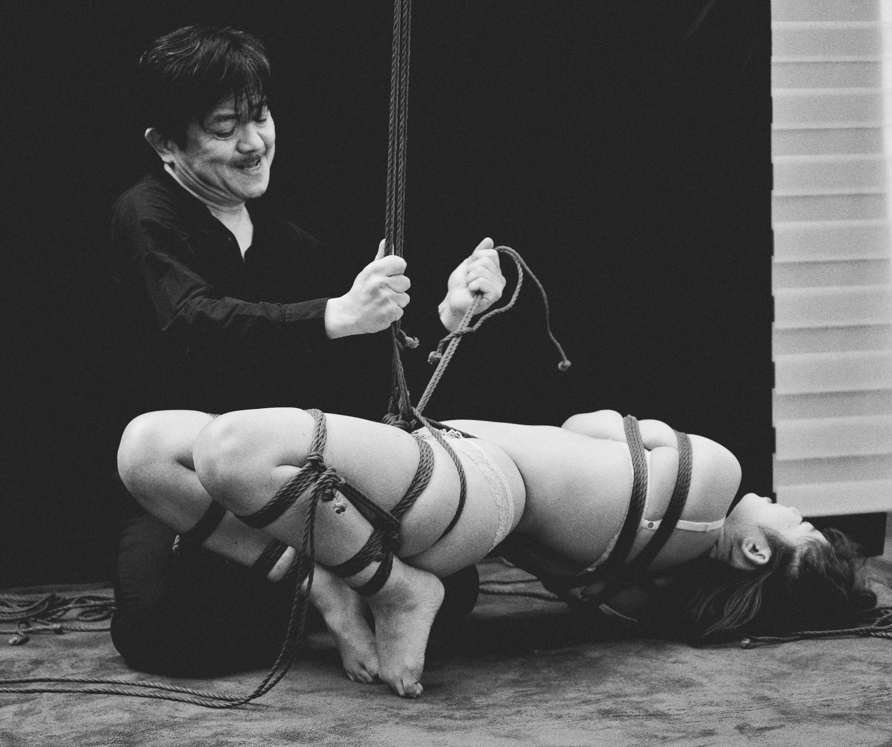 昨日ライブで4時間縛って、今日は昼から新人の縛られ夫人の動画撮影です。いやいやタフなおじさんですね(笑)