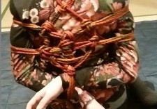 すっかり人の少なくなった広間で ゆったり緊縛開始です。3名の緊縛が広間で始まり、それぞれの上達度にあわせて練習です