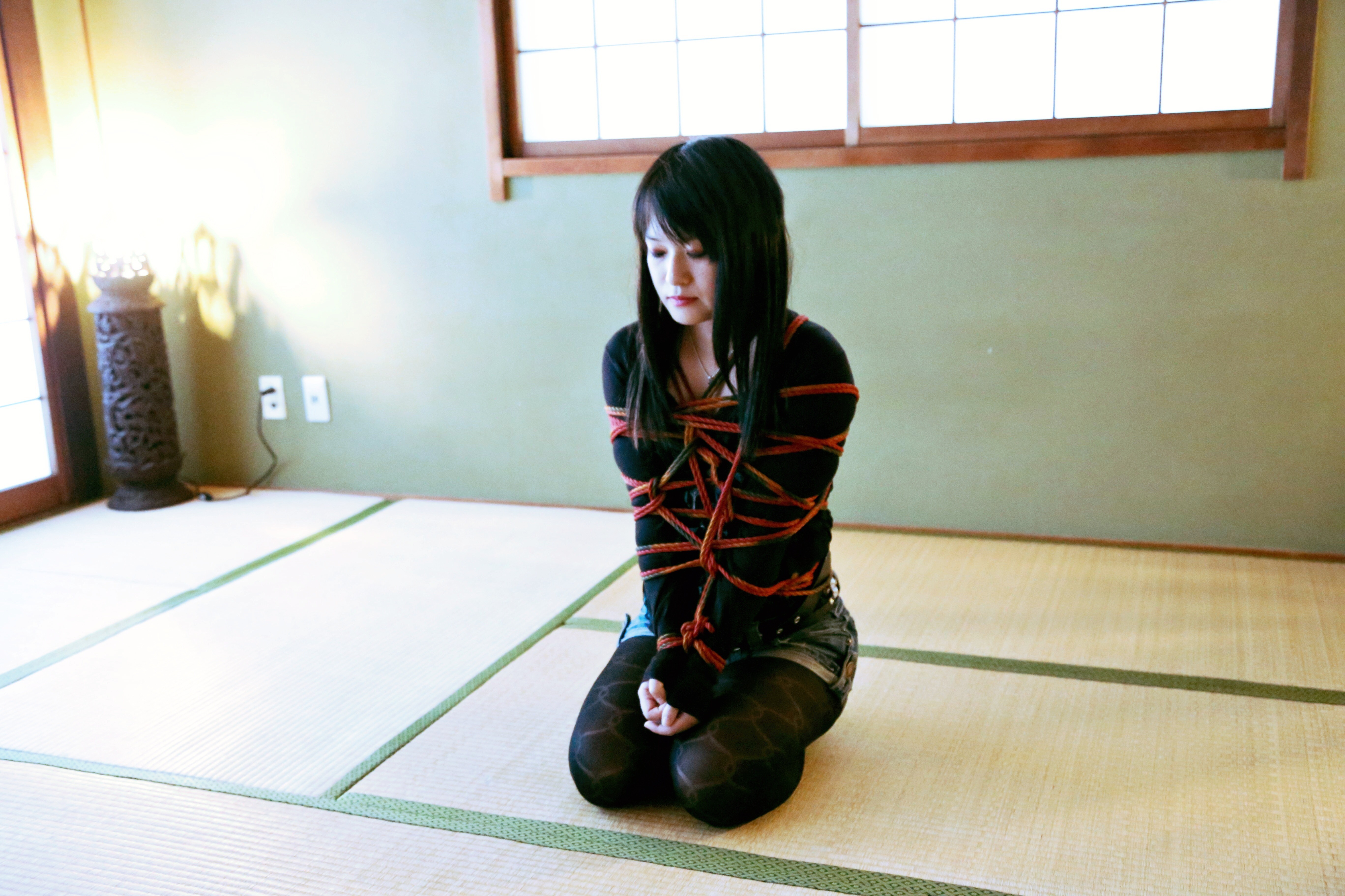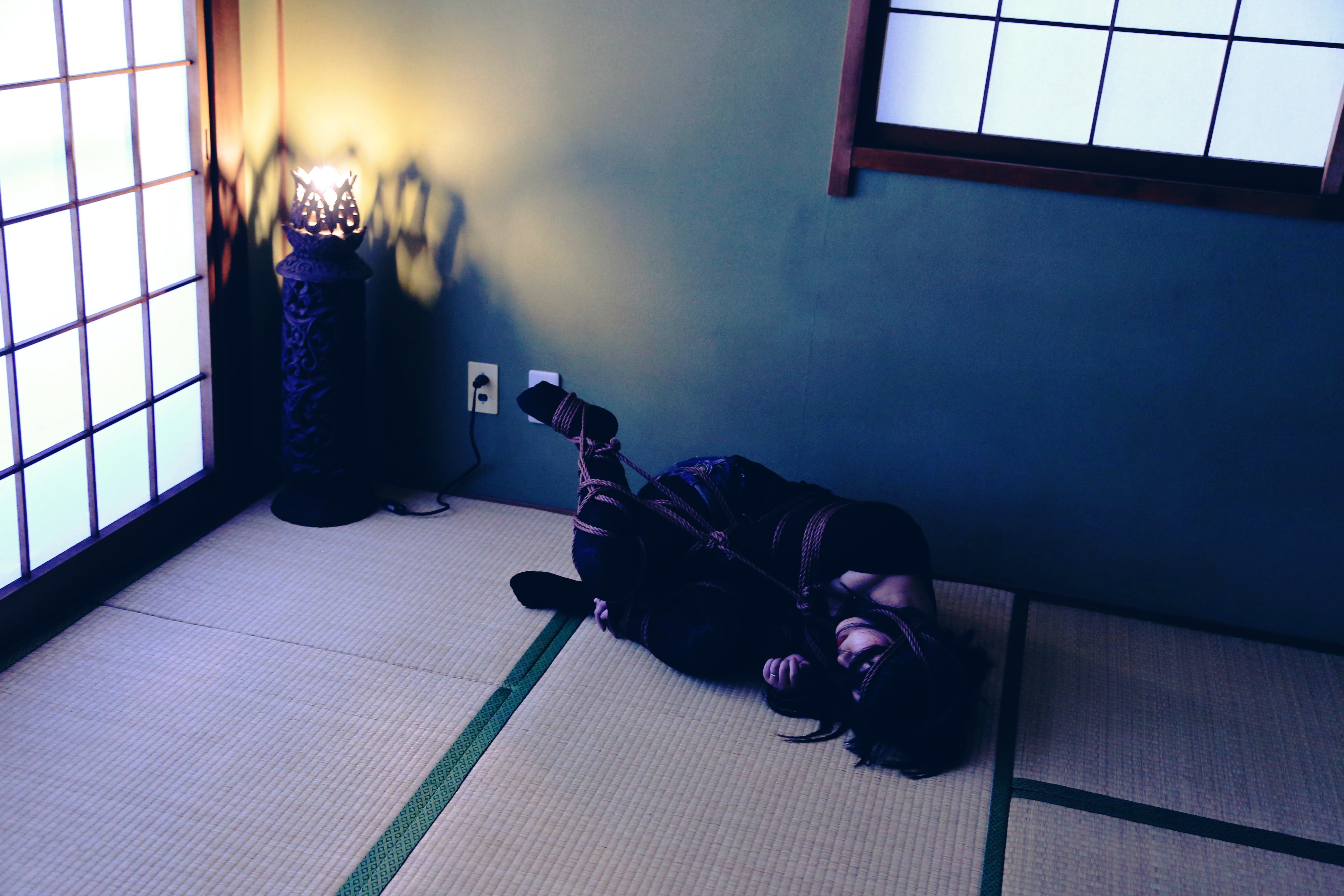 縛られて手足が動かなまま、身動きできない状態で