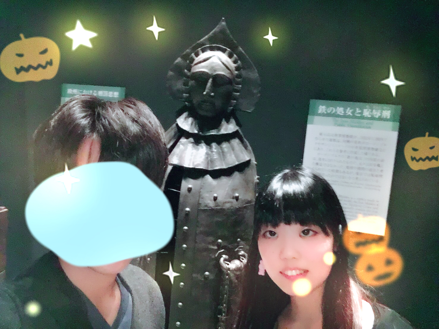 キラキラウェイだから鉄の処女の前で自撮り。顔塗り潰されてる方の人から誘ってくれたんだけどこの人展示見ながら痛そう〜痛い〜痛い〜って言うから面白かった。あれかね、器具だけ展示されてるとこってMの人の方が楽しめるのかね。そりゃそうだろうな。